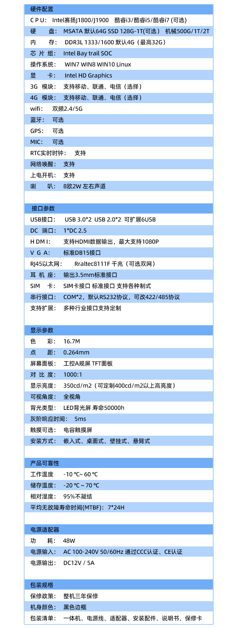 | CPU | Intel賽揚J1800/J1900 酷睿i3/酷睿i5/酷睿i7 板載i3/i5/i7(可選) |