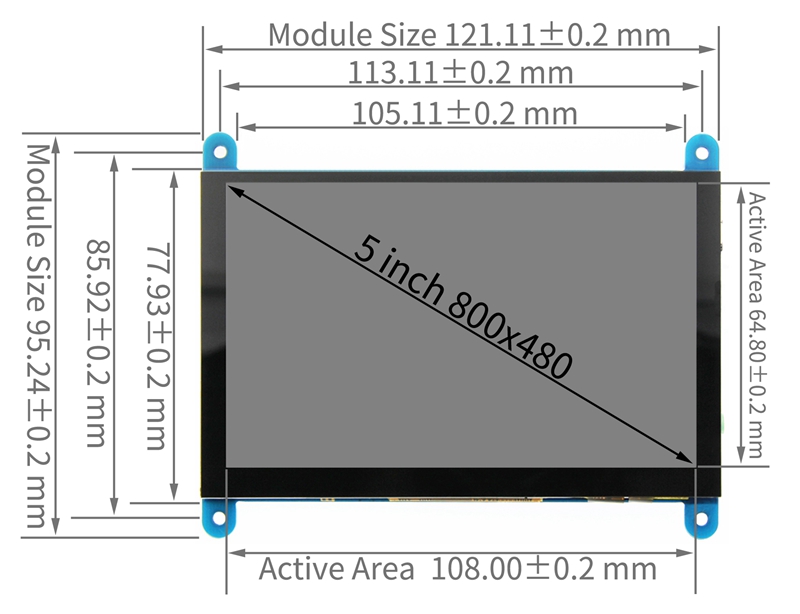 5inch標準顯示器,硬件分辨率800×480,可通過軟件配置分辨率(最高支持1920X1080)