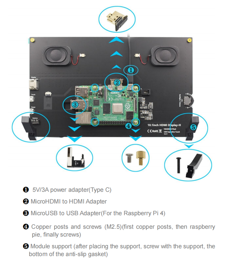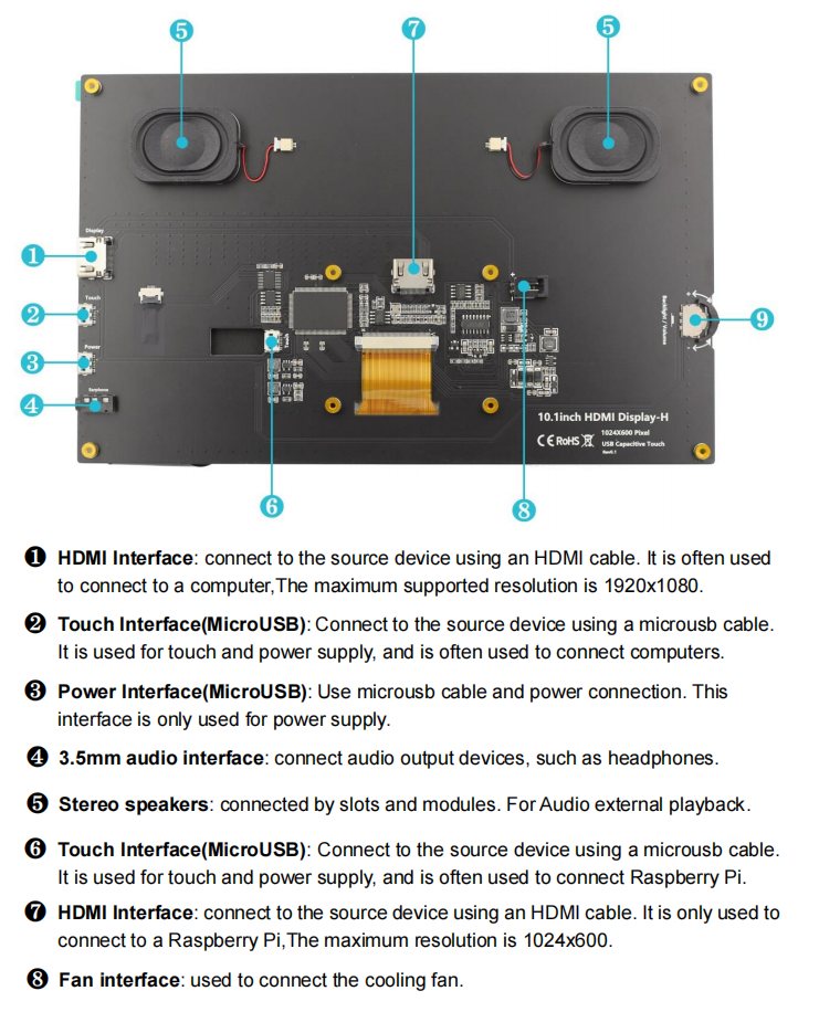 10.1寸IPS觸摸顯示器1024*600 HDMI接口帶立體聲揚聲器