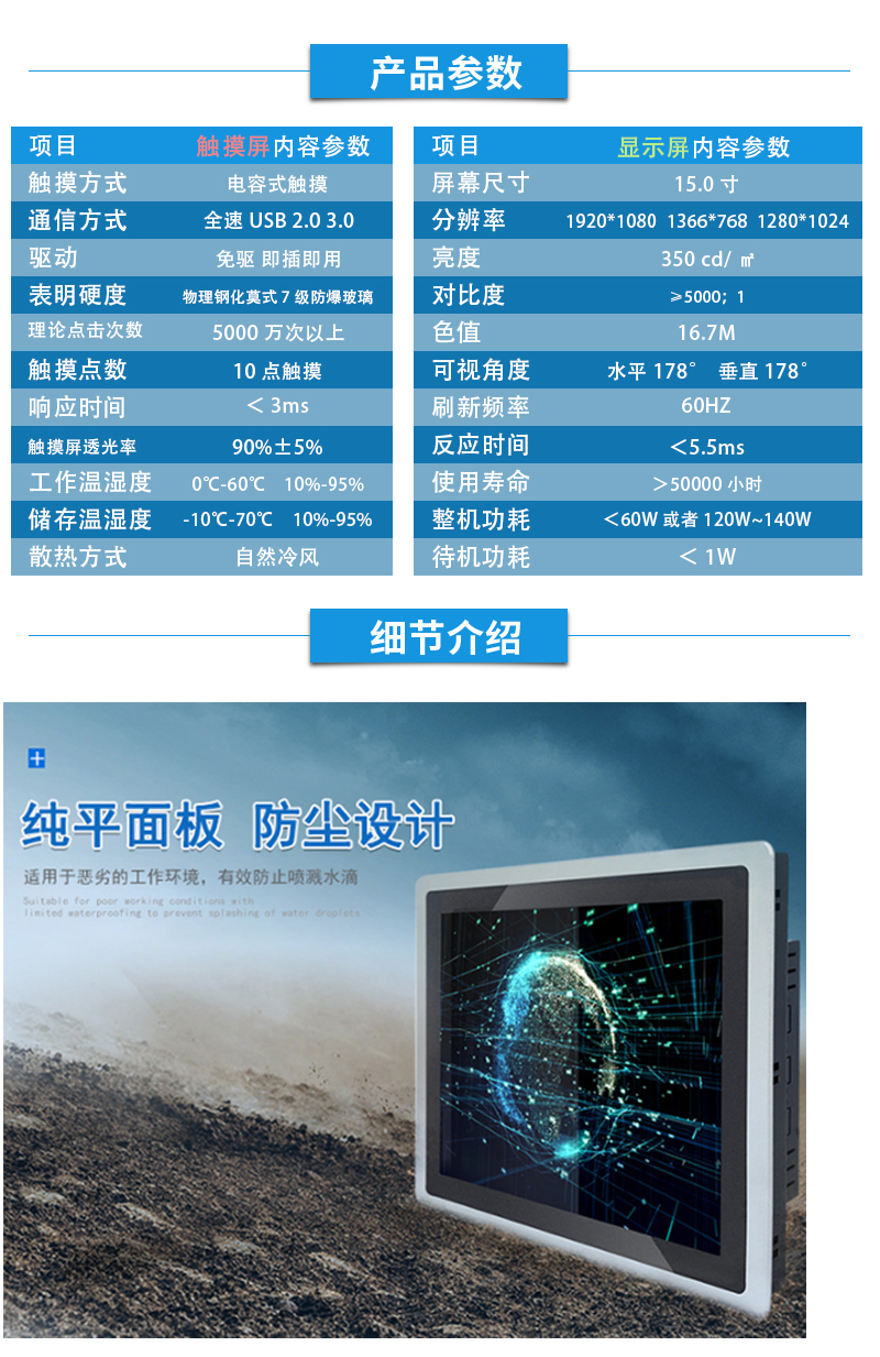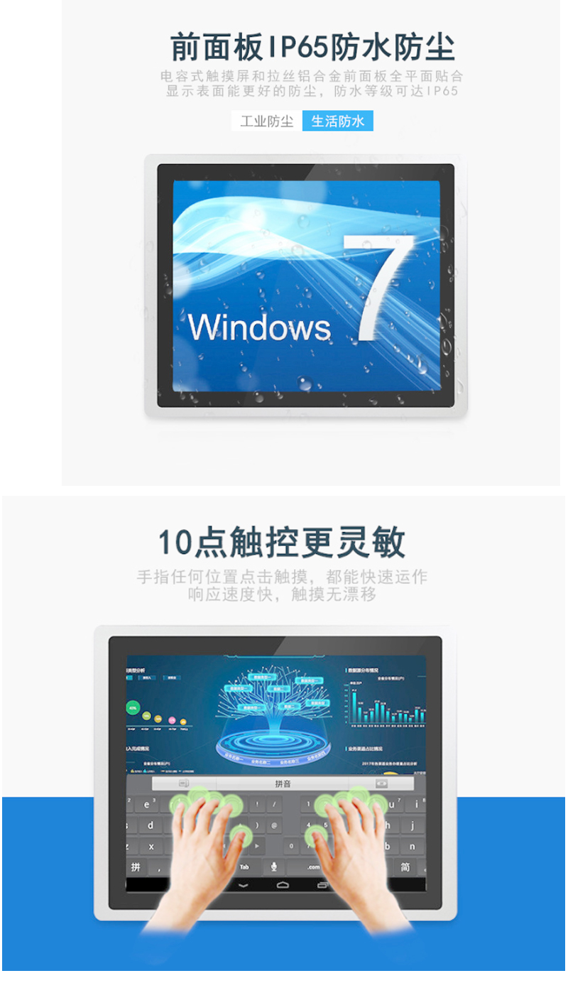 13.3寸工業(yè)一體機(jī)X86架構(gòu)J1900防水防塵純平前面框支持二次開發(fā)