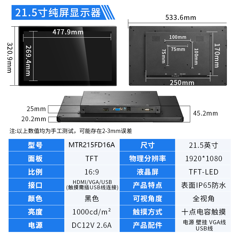 21.5寸工業(yè)觸摸顯示器1920*1080IPS屏HDMI接口1000亮度觸摸顯示器